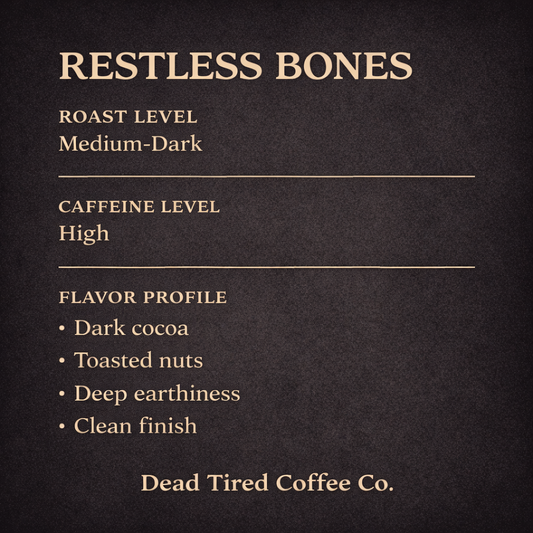 At Dead Tired Coffee Co., we know exhaustion isn’t a phase — it’s a lifestyle.