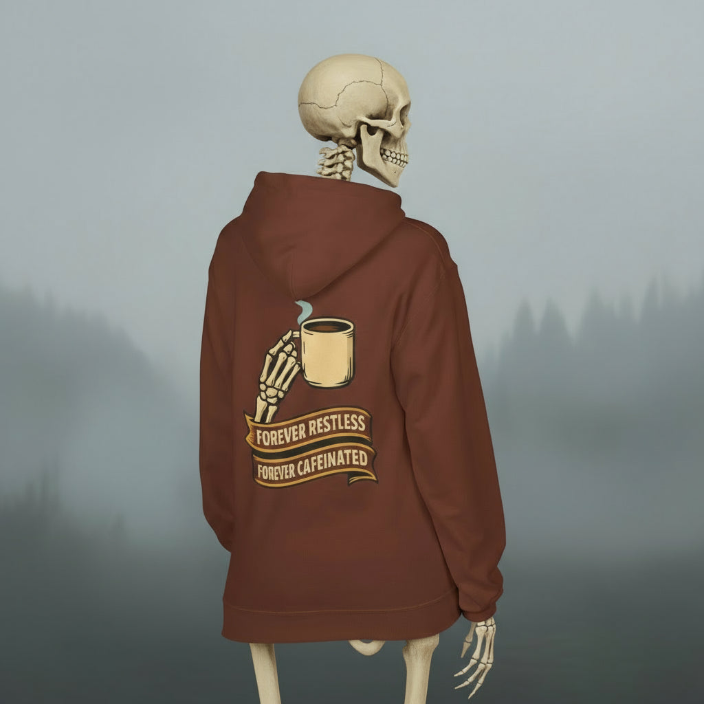 Forever Restless Forever Caffeinated Coffee Hoodie | Unisex Fleece Pullover for Coffee Lovers, Baristas & Caffeine Addicts