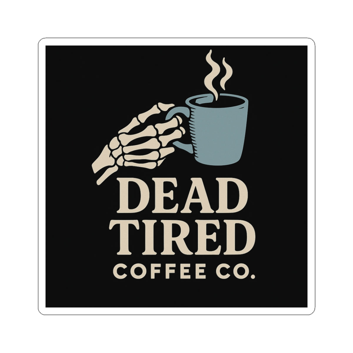 Dead Tired Coffee Co. — Coffee for the Restless Sticker | Gothic Kiss-Cut Vinyl Decal for Laptop, Mug, or Home Decor